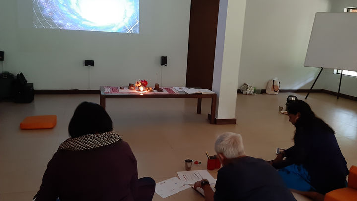 We will then move on to a more meditative state by chanting the mantras and exploring their effect on us. As we keep exploring the various aspects of a mantra, the feelings that arise within us will be expressed in colours. We will experience how each mantra is a path leading to a world and is the world itself. Read more here