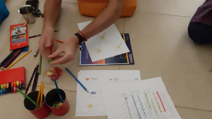 In the beginning was the word, and the word was with God, and the word was God. John 1:1. This explains the significance of “Nada Brahma” or the world of vibrations. In this workshop, we will first establish the intuitive co-relation of music and colours, connecting our sense of hearing with our visual sensation.